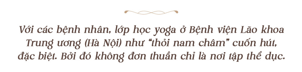 Giữa tháng 1, bà chuyển sang Bệnh viện Lão khoa Trung ương. Nghe tin ở viện có lớp yoga vào buổi chiều mỗi tuần, ánh mắt bà sáng lên. Được học yoga, bà Hằng rèn luyện thói quen ngồi thẳng lưng, ưỡn ngực, hóp bụng, dù rất khó so với những người cùng độ tuổi.