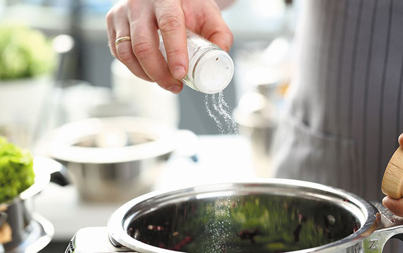1. Cho bớt muối khi chế biến thực phẩm: Khi nấu ăn cho giảm bớt lượng muối nêm vẫn thường dùng (giảm từ từ tiến tới giảm một nửa lượng muối).