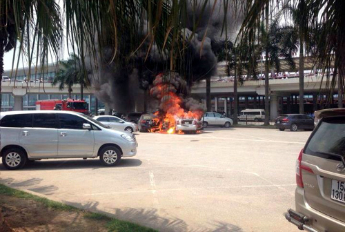 HAI ÔTÔ CHÁY DỮ DỘI Ở SÂN BAY NỘI BÀI