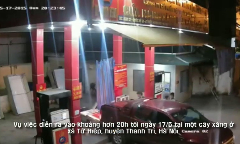 Vụ việc diễn ra vào khoảng hơn 20h tối ngày 17/5 tại một cây xăng ở xã Tứ Hiệp, huyện Thanh Trì, Hà Nội, được camera giám sát ghi lại.