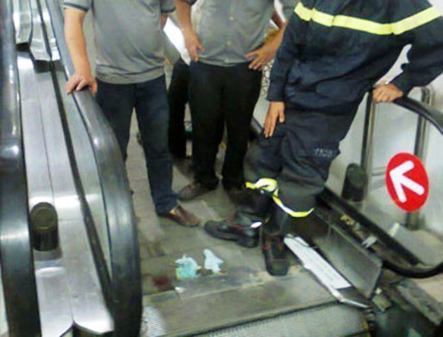 | Vị trí thang cuốn nơi cháu bé bị kẹt. |