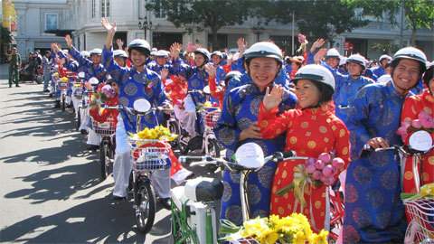 Sáng 2/9, lễ cưới tập thể cho 100 cặp đôi công nhân đã được tổ chức ở TP.HCM cực kỳ ấn tượng với 100 xe hoa bằng xe đạp điện.