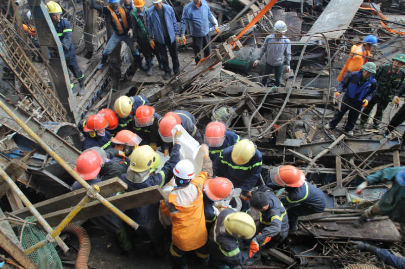 Hình ảnh xúc động về cảnh sát vụ sập giàn giáo |