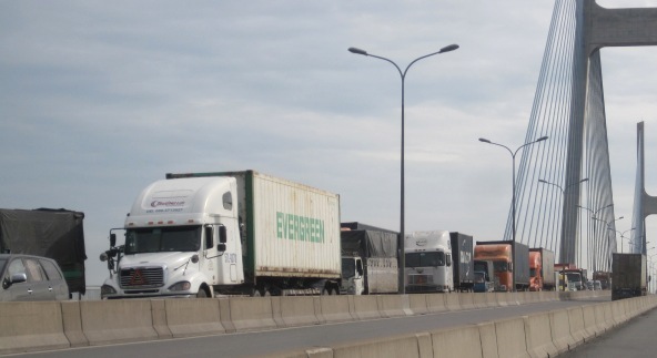 Liên tục trong nhiều ngày qua tái diễn tình trạng hàng trăm xe tải, xe container đi hướng từ Q.7 qua Q.2 đứng xếp hàng từ cầu Phú Mỹ (quận 7) đến chân trạm thu phí Cát Lái (Q2).