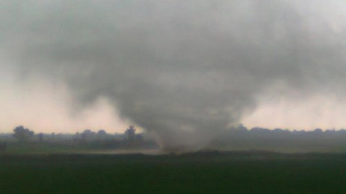 Đoạn clip ghi lại cảnh lốc xoáy càn quét ở một cánh đồng tại xã Tự Tân, huyện Vũ Thư (Thái Bình). Cơn lốc xoáy giống như một “vòi rồng”, khi di chuyển đã tạo ra gió lớn, quật gãy nhiều cành cây, lúa.