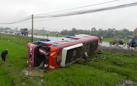 Vụ TNGT nghiêm trọng xảy ra vào khoảng 10h sáng 11/3 trên quốc lộ 1A, đoạn qua huyện Kỳ Anh (Hà Tĩnh). Xe khách giường nằm mất lái, lật nhào xuống ruộng khiến 12 hành khách bị thương.
