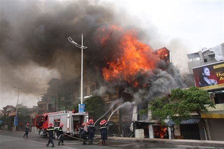 Nghe tiếng kêu la, nhân viên khách sạn đạp cửa xông vào, hoảng hốt phát hiện cặp nam nữ đang vẫy vùng trong lửa.