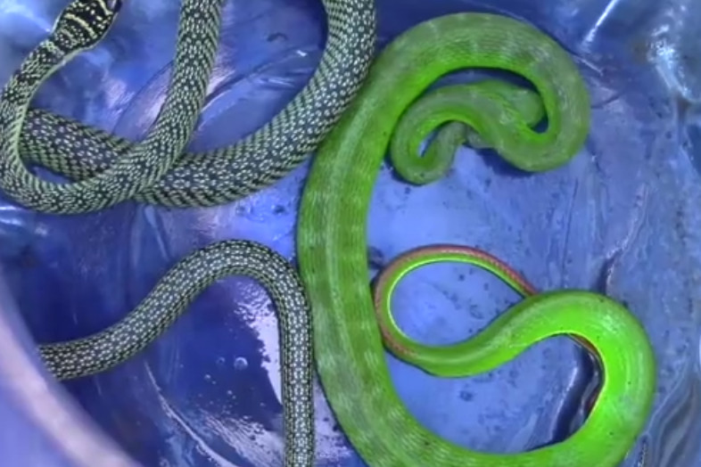 Bắt sống rắn lục đuôi đỏ bò vào nhà dân ở Sài Gòn