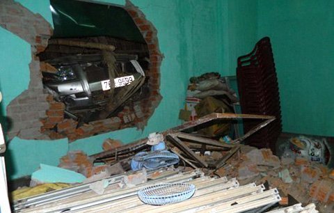 | Ô tô đâm thủng quán nhậu và nhà dân |