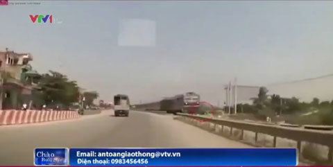 Trong khi tàu hỏa đang chạy, một thanh niên điều khiển xe máy với tốc độ cao đã bất ngờ cắt ngang đường chạy của đoàn tàu...