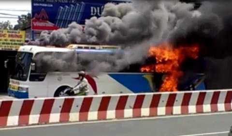 Xe khách chở 50 người đột nhiên bốc cháy
