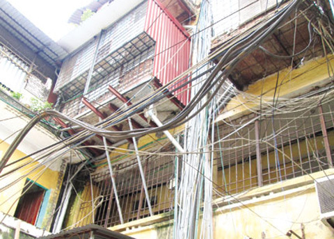 Mỗi khi mưa lớn, nước dềnh lên mặt đường 20-30cm kèm theo phân người và hàng trăm thứ phế thải hôi hám từ khu tập thể xả ra.