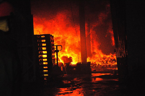 Hình ảnh về vụ cháy kho chứa hàng ở KCN Vĩnh Tuy (quận Hoàng Mai, Hà Nội) chiều 15/4.