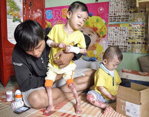 Ngày 30/3, vợ chồng anh Nguyễn Văn Trung (34 tuổi, ngụ số 19/4, KP Đông A, Đông Hòa, Dĩ An, Bình Dương) cho biết, do phải lo chữa trị cho hai con mắc bệnh lạ, gia đình đang rơi vào cảnh túng thiếu, cơ cực...