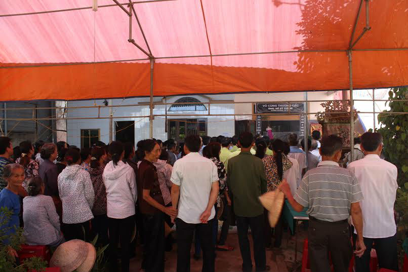 Thân nhân của gia đình bị nạn tập trung ở phía trước, họ đăm chiêu dõi mắt vào bên trong căn nhà - nơi chỉ mới đó còn rộn rã tiếng cười.