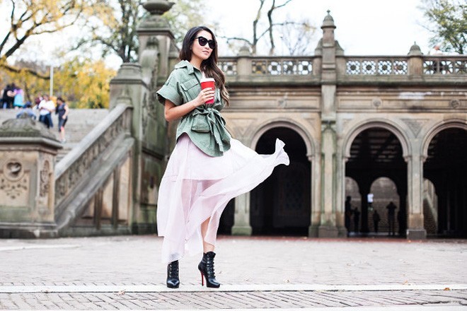 Mốt giấu quần và váy sơ mi được hot bolgger 8X kết hợp nhuần nhuyễn để tạo nên những kiểu trang phục dạo phố thật ấn tượng. |