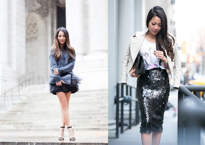 Các chất liệu nổi bật như sequin, ren, lông, tua rua… rất được lòng fashionista gốc Việt. Đây cũng là bí quyết để những cô nàng nhỏ nhắn trở nên hấp dẫn, gợi cảm hơn. |