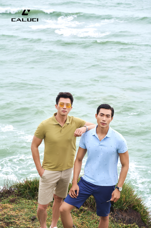 Màu sắc chủ đạo của Chapter 2 chính là Ocean Wave (xanh biển) và Emerald Green (lục bảo). Caluci khai thác tối đa 2 gam màu xu hướng này thông qua nghệ thuật phối màu tài tình trên các thiết kế sơ mi, polo.