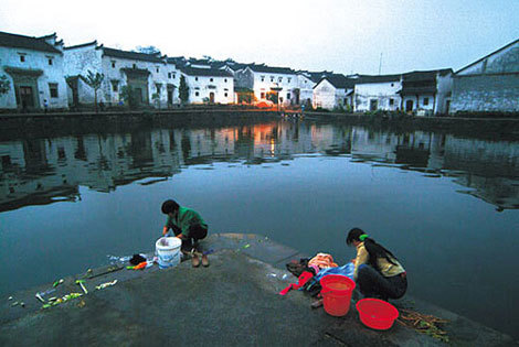 Người dân thôn Bát Quái vẫn sinh hoạt, giặt rũ bên hồ Chuông (Theo VTCnews) |