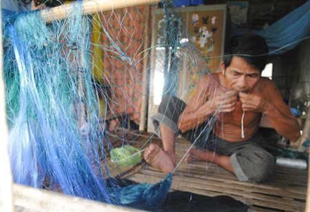 Cạnh đó, mặc dù nghề dùng miệng gắn chì vào lưới đã khiến sức khỏe suy kiệt nhưng 3 người trong gia đình anh Phan Sỹ vẫn phải tiếp tục bám nghề.