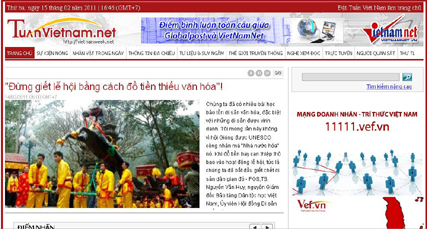 8h45 sáng nay (15/2), chuyên trang Tuần Việt Nam thuộc Báo VietNamNet bị tin tặc tấn công.