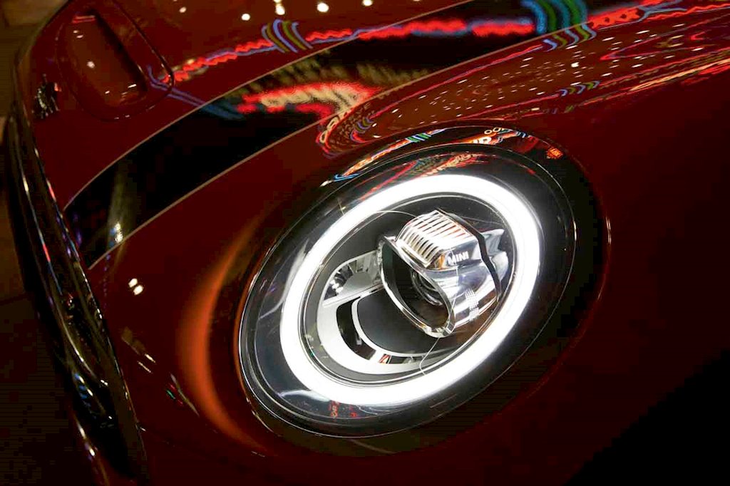 Thay đổi đầu tiên là thay đổi ở cụm đèn pha tròn đặc trưng giúp phần đầu của MINI trông mạnh mẽ hơn. Cụm đèn pha sử dụng công nghệ ánh sáng mới cho chùm tia thấp xuống nhưng độ sáng tăng lên. Ấn tượng hơn nữa, vòng lớn bao quanh toàn bộ đường viền của đèn pha chính là đèn LED ban ngày và đèn báo rẽ, khác hẳn các thiết kế đèn trước đây.