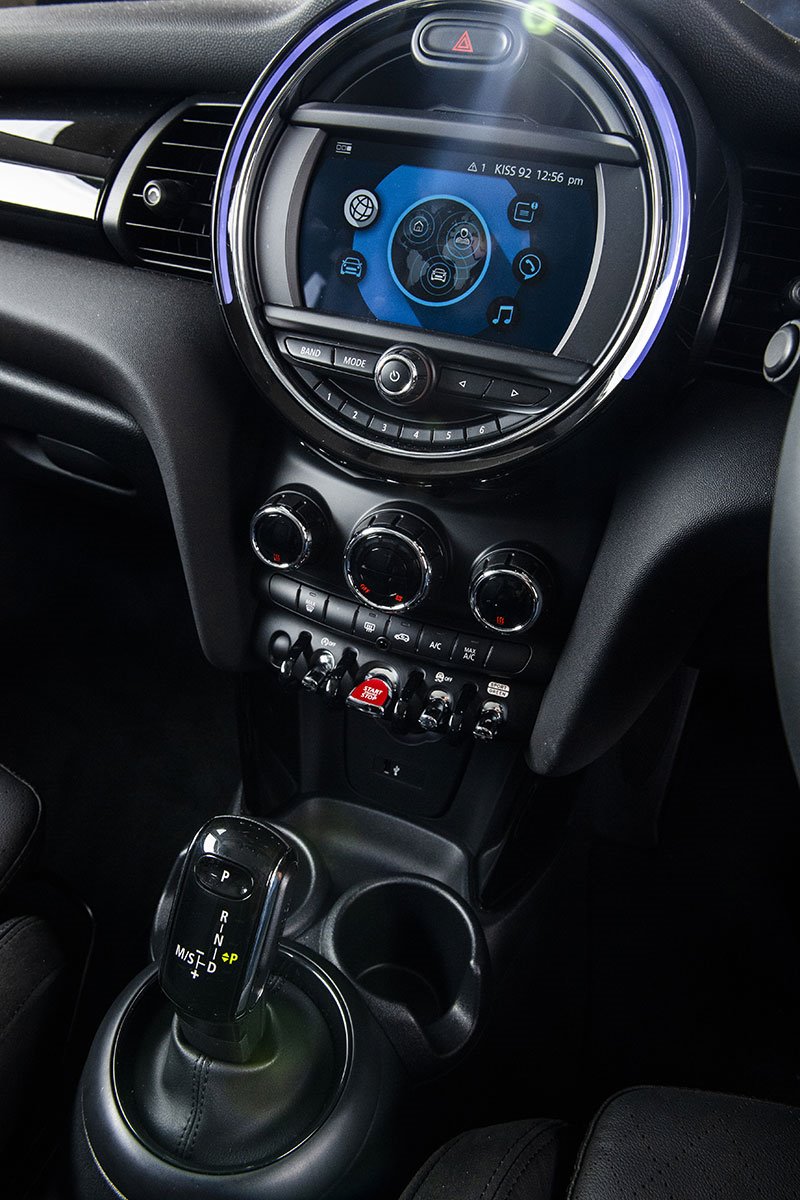Trên MINI phiên bản nâng cấp, tay lái được tích hợp thêm các nút bấm đa chức năng như kích hoạt thiết bị giới hạn tốc độ Speed Limit Device để thiếp lập tốc độ lái tối đa và dễ dàng điều khiển âm thanh trong xe. Trang bị tiêu chuẩn cũng bao gồm một hệ thống âm thanh với bảng điều khiển trung tâm màn hình màu 6,5 inch cảm ứng, tích hợp với điện thoại di động thông qua Bluetooth. Xe còn trang bị thêm tuỳ chọn Radio MINI Visual Boost và hệ thống định vị.