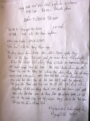 vi đánh người của gia đình bà Hoa Phượng gửi đến công an. Trong đơn, họ nói rõ