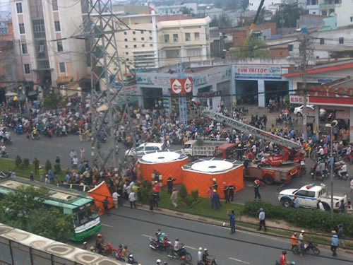 Tân, cảnh sát PCCC, CSGT quận Bình Tân đã tới hiện trường để tiến hành giải