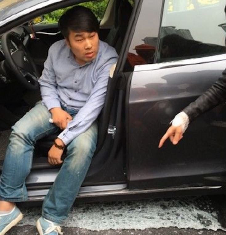 Một lái xe vừa mở cửa bước xuống thì kính rơi xuống. May mắn là anh chị bị thương nhẹ và không có ai bên cạnh. Nguyên nhân của sự việc là do một nhóm công nhân khi thay kính không may đã khiến tấm kính rơi xuống.
