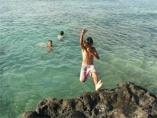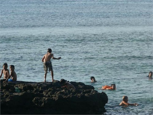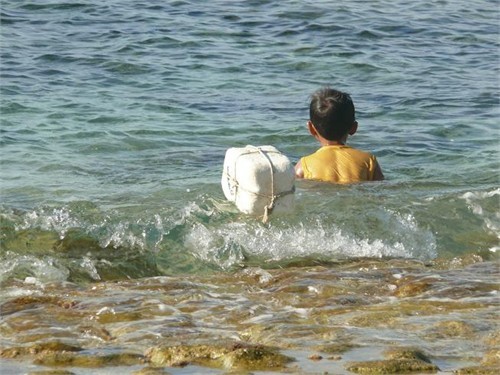 | Trẻ em huyện đảo Lý Sơn và trò chơi “nhảy cầu biển” (Ảnh Bưu Điện Việt Nam) |