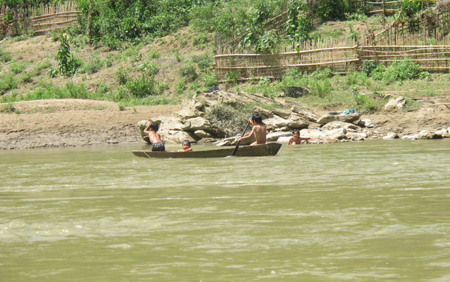 Gắn với sông nước, mùa hè về nhiều em còn chơi trò “độc mộc”. “Một mình mình trên chiếc thuyền nan” các em vẫn vô tư “thả mình” theo dòng nước mà không hề nhận thức được những nguy hiểm xung quanh.