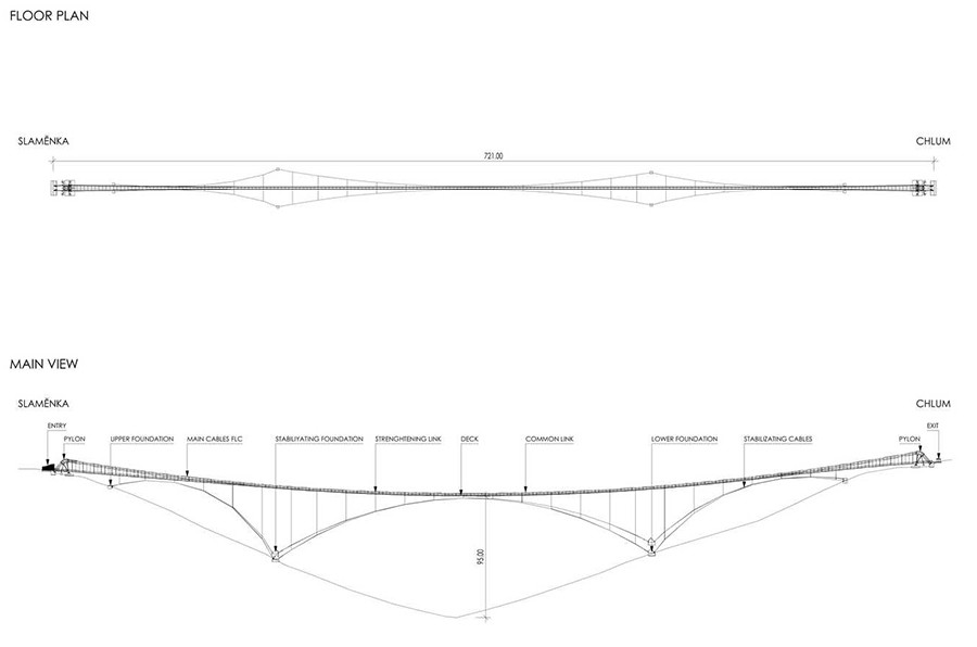 Nơi cao nhất của cây cầu cao 1.125m so với mực nước biển và nơi thấp nhất là 1.135m. Sau khi băng qua thung lũng, du khách sẽ được tìm hiểu về thiên nhiên và lịch sử địa phương.