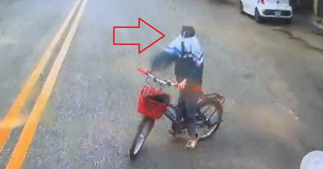 Đoạn clip tua nhanh ghi lại hành động kỳ quặc của bé trai đi xe đạp khiến người xem rùng mình.