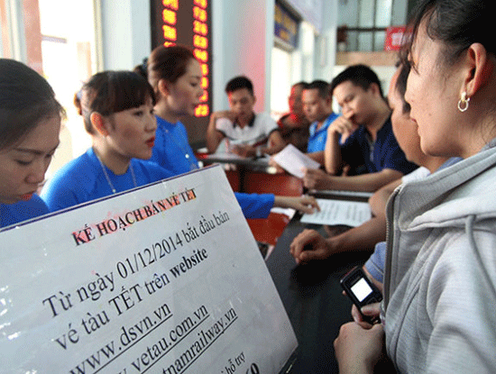 Đúng 8 giờ ngày 1/12, 3 trang web của ngành đường sắt Việt Nam gồm: www.dsvn.vn, www.vetau.com.vn, www.vietnamrailway.vn đồng loạt mở mạng để khách hàng vào đặt chỗ, mua vé tàu Tết 2015. Hơn một giờ sau khi nhà ga mở mạng, các tuyến đường ngắn như Sài Gòn - Tuy Hòa, Sài Gòn - Diêu Trì, Sài Gòn - Tam Kỳ... đã hết vé trong một số ngày cao điểm.