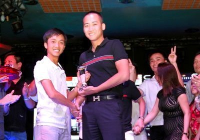 Đỗ Bình Dương hay Dương "Kon" (phải) chụp ảnh cùng Cường "đô la" tại Hành trình siêu xe 2011.