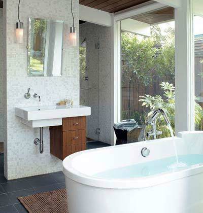 Xu hướng phòng tắm hiện đại là kéo thiên nhiên vào thật gần. Đây thực sự là không gian thư giãn lý tưởng sau một ngày làm việc mệt mỏi giữa tiết trời nóng nực của mùa hè.