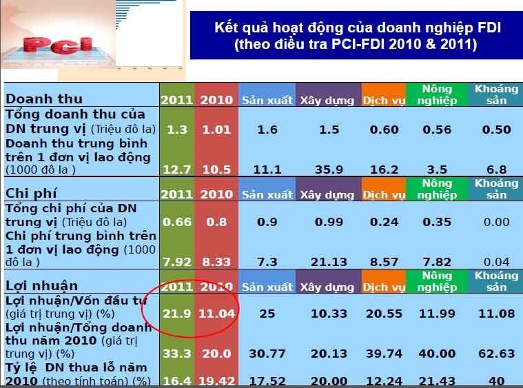 Kết quả hoạt động của doanh nghiệp FDI (Nguồn: VCCI) |