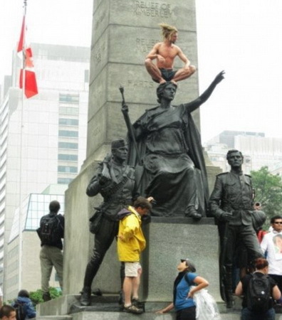 | Trên đỉnh một bức tượng - Ảnh: Daily Mail |