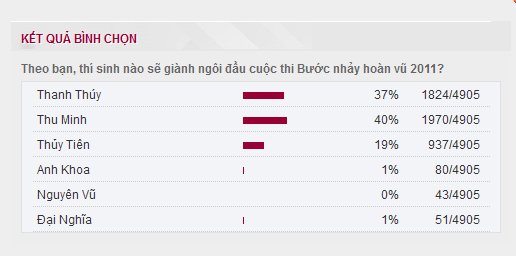 Kết quả bình chọn của bạn đọc VietNamNet cho đến thời điểm hiện tại