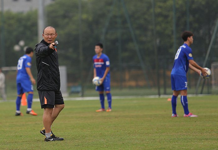 | HLV Park Hang Seo đang đóng vai một bảo mẫu ở đội tuyển. Ảnh S.N |
