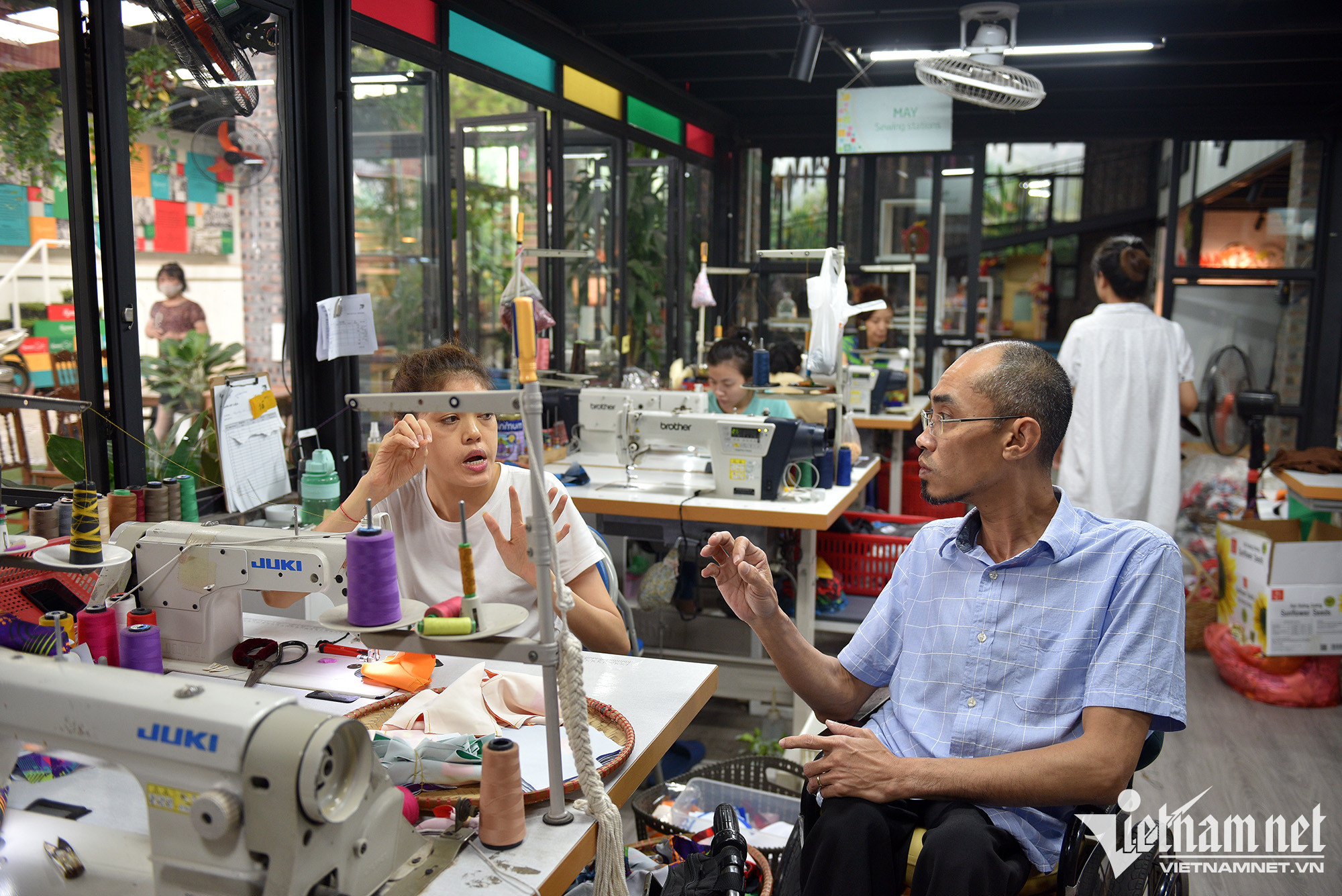Cơ sở sản xuất thú nhồi bông của anh Phạm Việt Hoài là nơi tạo công ăn việc làm cho những người khuyết tậtAnh Phạm Việt Hoài đang trao đổi ý tưởng, triển khai công việc với những người khuyết tậtMỗi chú Sao La này được thiết kế bằng vải da lộn với khoảng 37 chi tiết cắt may, được hoàn thiện từ đôi bàn tay khéo léo của những người khiếm khuyết.Từ mẫu da lộn nguyên liệu, các chi tiết được cắt laze theo bản vẽ thiết kế và được khâu đột một cách tỷ mỉ chắc chắn.Công đoạn nhồi bông vào các chú Sao LaNhững sản phẩm được làm thủ công, tỉ mỉ, tinh sảo từng công đoạn được hoàn thiện kỹ lưỡngBTC SE Games 31 ghi rõ trong công văn, để tránh gây hiểu nhầm, công ty Kym Việt không được in ấn logo SEA Games 31 lên quần áo thú nhồi bông sử dụng hình ảnh Sao La, đồng thời tuân thủ thiết kế hình ảnh Sao La của BTC và các quy định pháp luật có liên quan.Xưởng sản xuất này là nơi đào tạo nghề, xây dừng môi trường làm việc cho người khiếm khuyết. Họ chủ yếu bị câm điếcSản phẩm cao khoảng 25cm, với độ hoàn thiện rất tốt tới từng đường kim mũi chỉ, có giá bán là 360.000 đồng.Những chú Sao La được nhồi bông chắc chắn với công nghệ hiện đại. "Để làm được chú Sao La này, người thiết kế cũng phải xem rất nhiều hình ảnh của Sao La để nhân cách hoá loài vật này một cách giống nhất. Những chi tiết riêng của Sao La được thể hiện rõ ràng, để người xem nhìn thấy đây là Sao La chứ không phải là dê hay sơn dương" - anh Hoài chia sẻ thêm.Sản phẩm thú nhồi bông mang hình ảnh Sao La SEA Games 31 của Kym Việt được nhiều người tìm mua, vừa hưởng ứng SEA Game 31 đang diễn ra, vừa để ủng hộ những sản phẩm của những người khuyết tật làm ra.Đây là hoạt động bên lề, hưởng ứng ngày hội thể thao Đông Nam Á và chúng tôi cũng mong muốn truyền tải thông điệp bảo vệ động vật hoang dã nói chung và với loài Sao La - Kỳ Lân châu Á nói riêng".Sao La nhồi bông khoẻ khoắn, cơ bắp nhưng đáng yêu với quần áo in hình cờ Tổ quốc hoặc màu sắc lấy cảm hứng từ lá cờ ASEAN với tinh thần đoàn kết, hữu nghị.