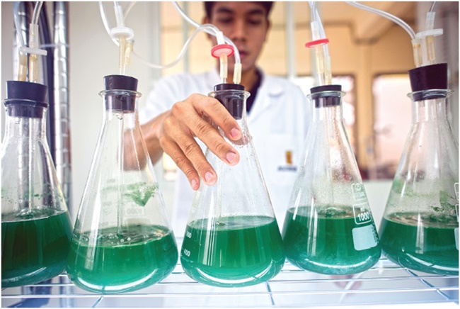 Thứ được nuôi trồng trong các bình thủy tinh có tên khoa học là Spirulina platensis. Đây là một loại vi tảo dạng sợi xoắn màu xanh lục