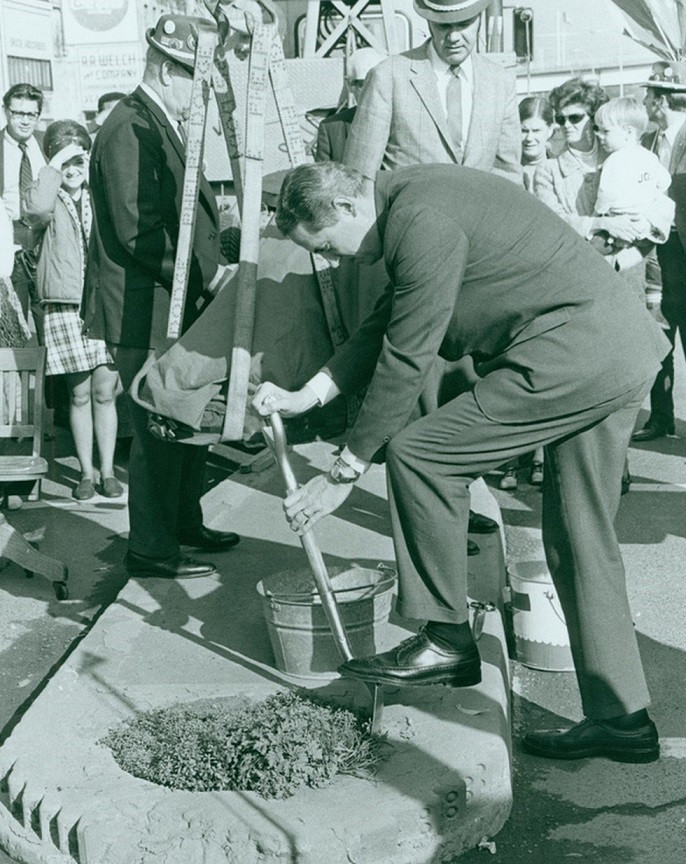 Vào năm 1948, khi chiếc cột cuối cùng bị đổ và cỏ mọc lan ra xung quanh, Dick Fagan, một nhà báo viết cho tờ Oregon Journal, quyết định tự tay trồng cây và hoa vào chiếc hố. Từ cửa sổ văn phòng, Fagan có thể nhìn thấy "công trình" của mình nằm trên con đường chạy qua tòa nhà nơi ông làm việc.