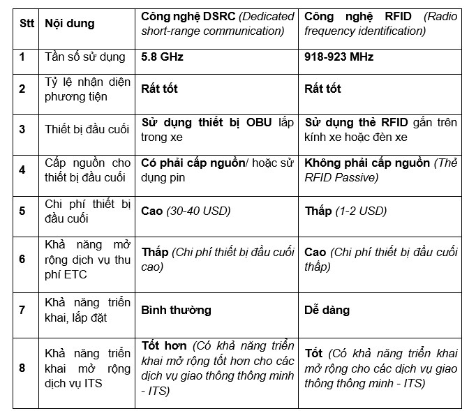 Theo đại diện VDTC, cả hai công nghệ đều có ưu và nhược điểm, tuy nhiên công nghệ RFID phù hợp với văn hóa, môi trường giao thông tại Việt Nam, nhờ 3 ưu điểm là mức độ nhận diện chính xác cao, chi phí sử dụng thấp và dễ dàng triển khai lắp đặt.
