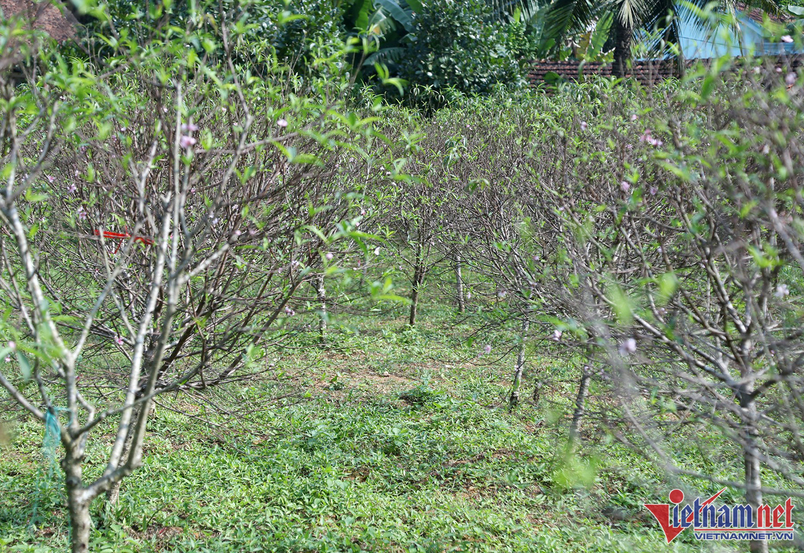 Ghé thăm vườn đào hơn 350 gốc của gia đình chị Nguyễn Thị Thuyết (trú xã Kim Thành), chị cho biết, cứ vào giữa tháng 11 âm lịch hàng năm, người trồng đào bắt tay vào tuốt lá, tỉa cành khô, cành vụn cho các cây đào.