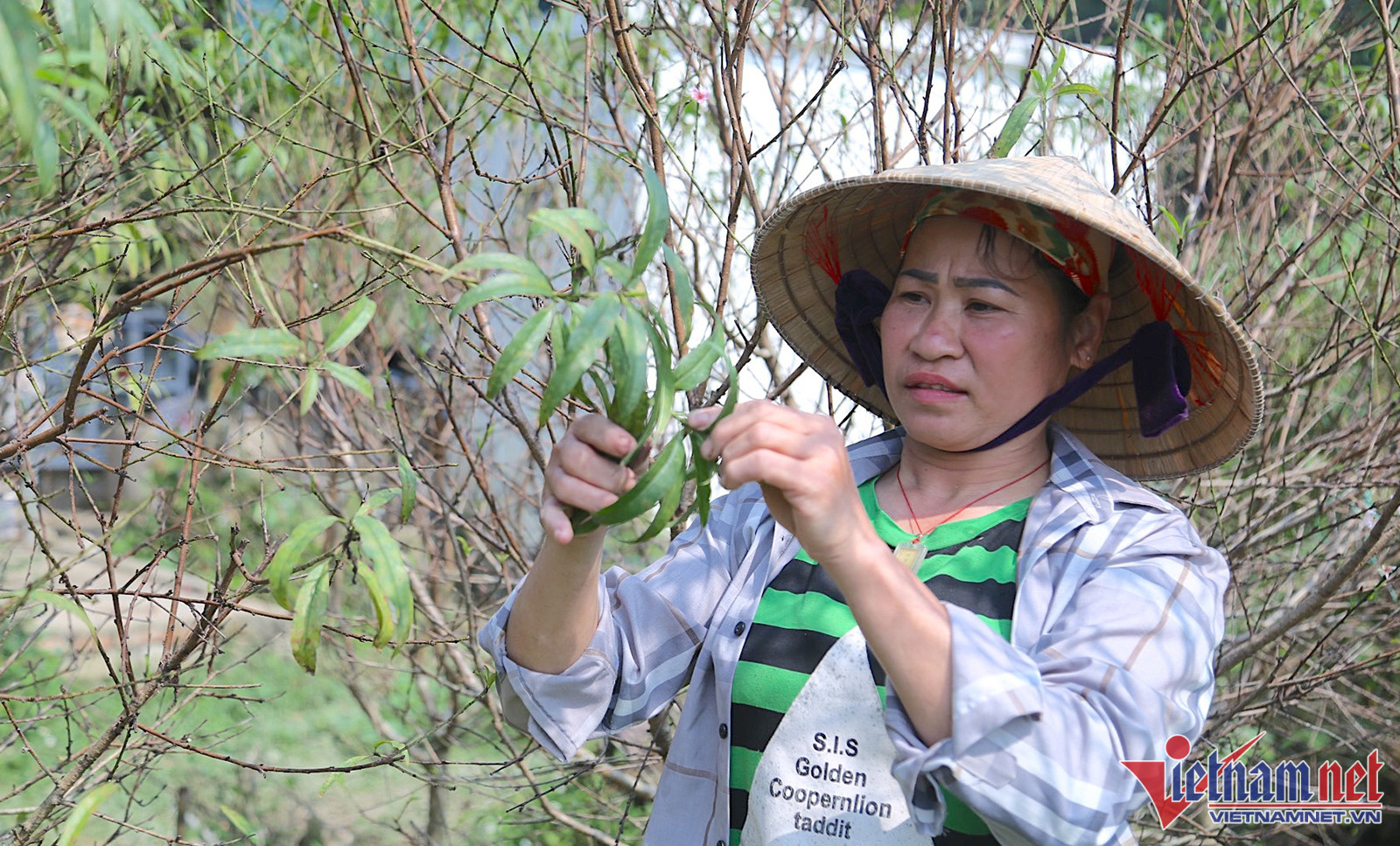 “Tuốt lá đào, tỉa bỏ cành là kinh nghiệm dân gian hàng chục năm của người dân nhằm kích thích cây ra hoa. Khi tuốt hết lá, toàn bộ chất dinh dưỡng của cây sẽ tập trung chuyển sang nuôi búp. Từ đó, cây nở hoa đúng ý của chủ vườn”, chị Thuyết tâm sự.