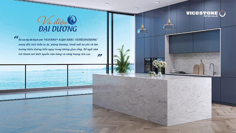Mỗi sản phẩm của Vicostone được xem như một tác phẩm nghệ thuật, đưa thiên nhiên vào từng không gian sống, góp phần đem lại cuộc sống tràn đầy năng lượng tươi mới cho người dùng. Đây cũng chính là giá trị hướng tới của bộ sưu tập mới 2022 “Vicostone® Acqua Series - Vũ điệu Đại dương”, lấy cảm hứng từ những khoảnh khắc kỳ diệu khác nhau của biển cả mênh mông.