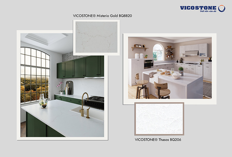 Mỗi “kiệt tác” đá thạch anh của Vicostone® đều được kết tinh bởi “Công nghệ - Trí tuệ - Sáng tạo” dựa trên sự thấu hiểu khách hàng, cùng sự cân bằng giữa tính năng vượt trội và cảm xúc sáng tạo thăng hoa.