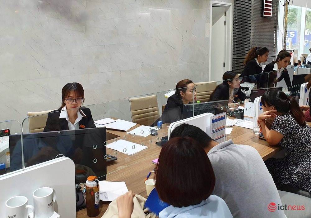 Nhân viên một ngân hàng đang hỗ trợ khách. Ảnh: Hải Đăng |